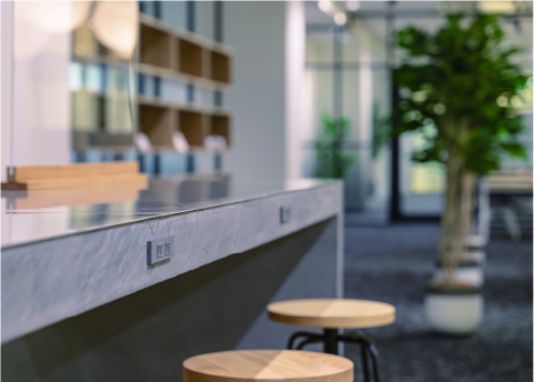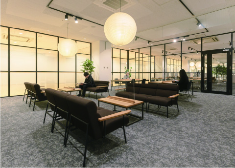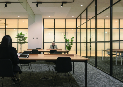 個人ワークにおすすめな半個室ブース。ブース毎に仕切りがあり、誰にも邪魔されず業務に集中できます。また、広い机が設置されているので、多様な業務に活用頂けます。 サテライトラウンジ利用可能な会員であれば自由に利用頂けるスペースです。